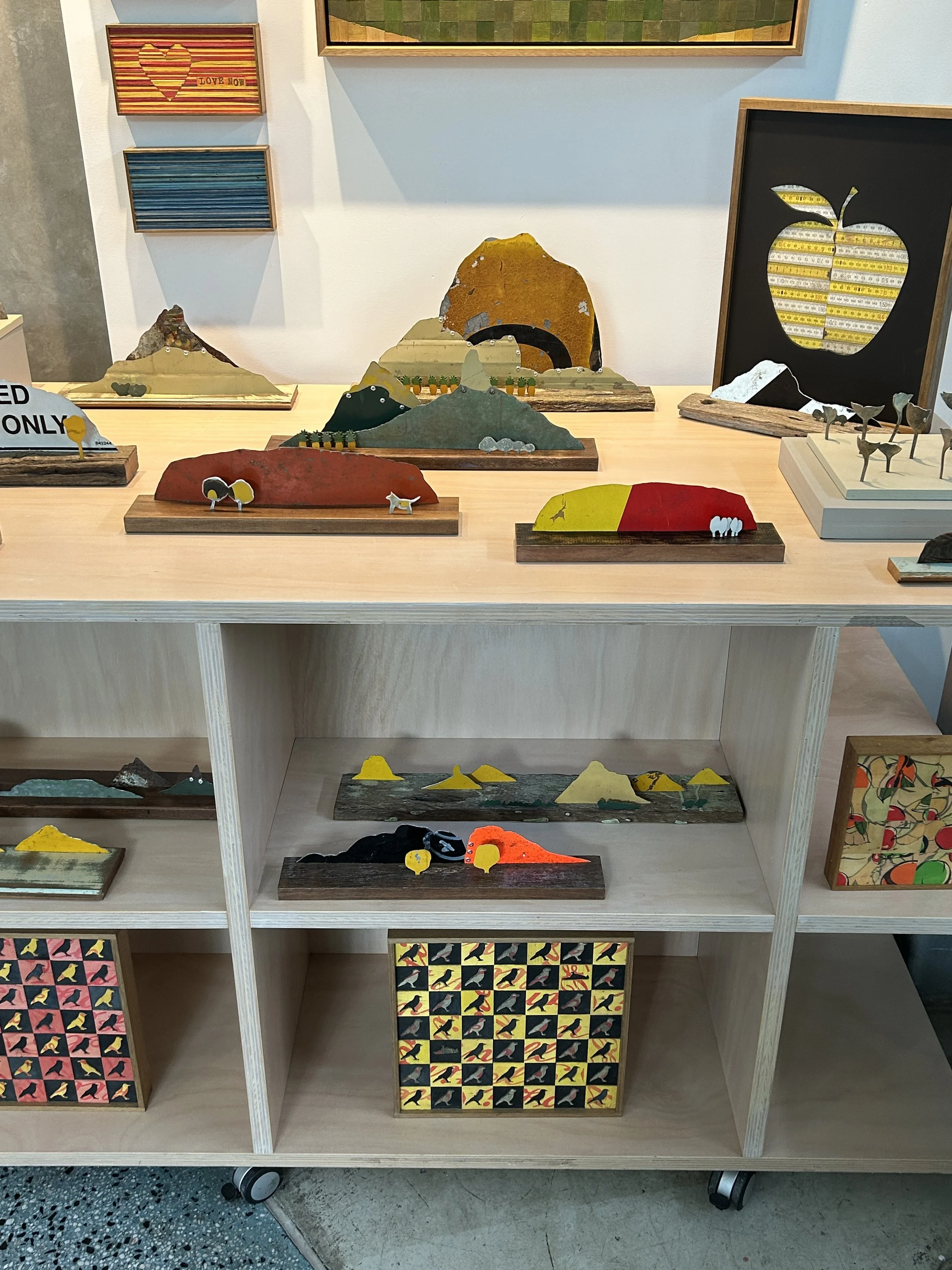 I've been looking for and gathering found objects for many years. I brought some of these together to tell my own stories of country and human interaction. My recent travels and work in remote Aboriginal art centres in central Australia have prompted me in different directions. In this exhibition, I asked questions about our sense of ownership, possession, re-purposing and the ever-changing element of life and time passing. Go here for more information.