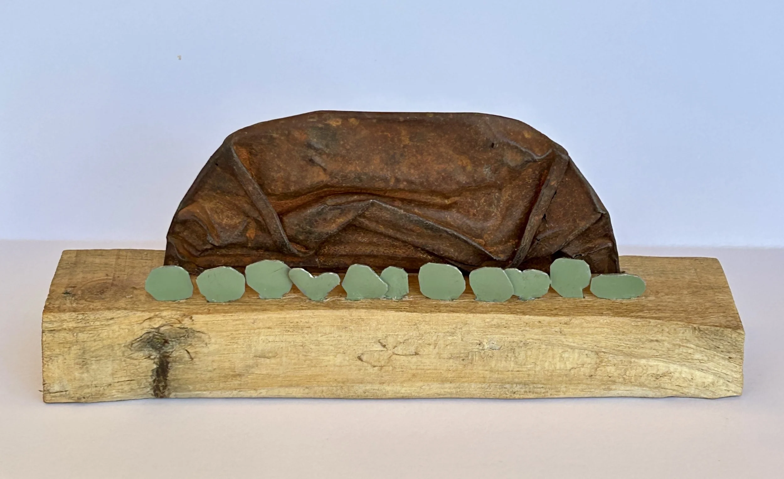 I live near these mountains and they are culturally significant to the Kabi Kabi people and the Jinibara people, the traditional owners. Before white settlement, the land was a special meeting place where many people gathered for ceremonies and trading. Each work is unique and made from locally sourced discarded tin and metal set on wooden bases. They vary in size, from 20-45cm long, 4-10cm wide and up to 12cm high. Contact me for a list and prices.